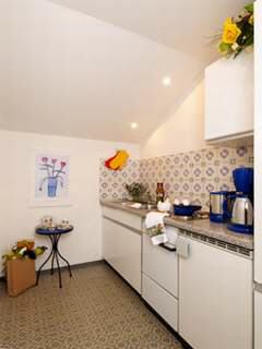 Wohnung Nr. 2 2-Zi.-App. für 2-4 Pers. ca. 64 m² Wohnzimmer m. Südbalkon, Schrankbetten für 3.+4. Person, Schlafzimmer mit Westloggia, separate Küche, Bad mit Badewanne und WC. |