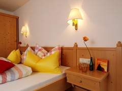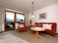 Wohnung Nr. 1 2-Zi.-App. für 2-4 Pers. ca. 70 m² Wohnzimmer m. Südbalkon, Schrankbetten für 3.+4. Person, Schlafzimmer mit Ostbalkon, separate Küche, Bad mit Badewanne und WC. |